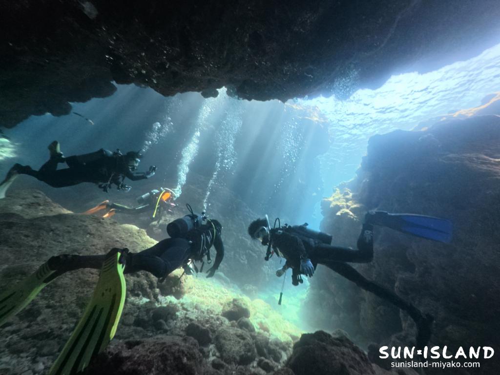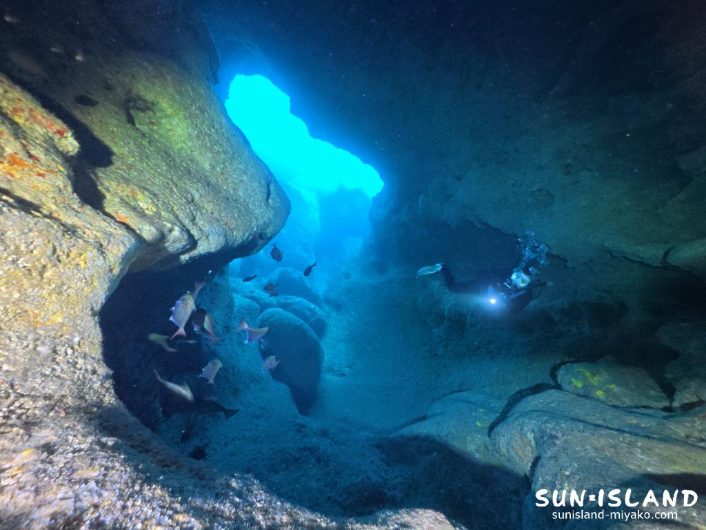 多くのダイバーを魅了してやまない宮古島 ダイビングスポットが集中しており、複雑に入り組んだ洞窟や巨大なアーチ、そして海底に広がる広大なクレバスなど、その造形はまるで冒険の世界。
