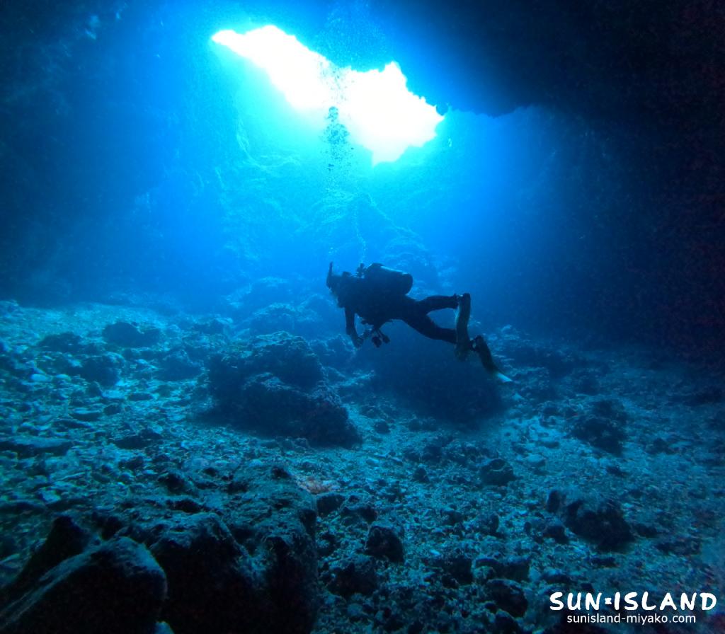 この2つのポイントは宮古島の洞窟ポイントの中ではかなり大きい洞窟のポイントでダイナミックな洞窟の造形とくらい穴に海の青みが映て最高でしたね。