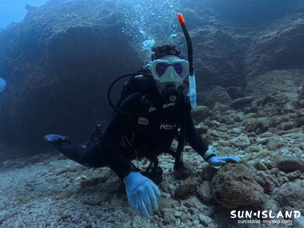 サンアイランドでは、初心者の方やブランクがある方でも安心して宮古島の地形を楽しめるよう、徹底した少人数制でサポートしています。久しぶりの海で不安な方や、もっと上達したい方は、ぜひ当店の[ファンダイビング詳細ページ]もご覧ください。