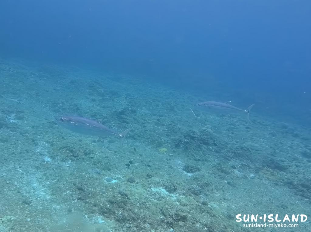 そしてOさん・Tさんが浮上した後、ワタシが船の錨を外しに向かうと、突然目の前に体長1.5mオーバーのイソマグロが2匹現れました。中の島チャネルは湾内に位置するため潮通しが限られており、イソマグロのような回遊魚にはほぼ縁がないスポット。あまりにも唐突な出会いに、思わず「おぉぉ……」と声が漏れました。