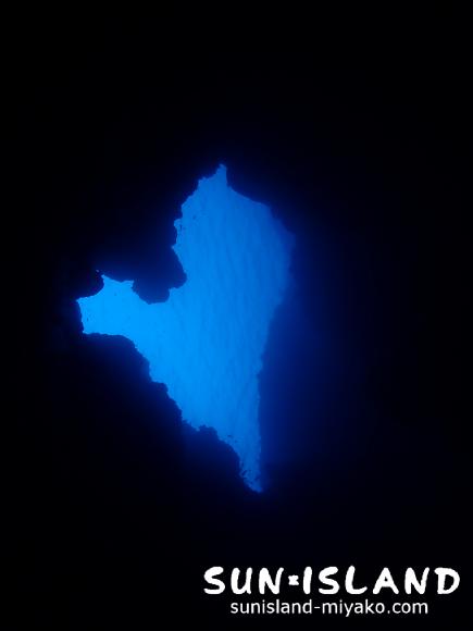 まず1本目は『35ホール』。宮古島の地形の中でもベスト3に入るくらいの穴の大きさで、入口の開口部は見る角度によってはハートにも見えるんですよ!そし洞窟の中には、小さなサメ(ホワイトチップシャーク)がいて、見れたり見れなかったりな運試しのところがあるのですが、今日はいました!可愛いサイズで、ライトを当てるとどこかへ泳いでいきました。