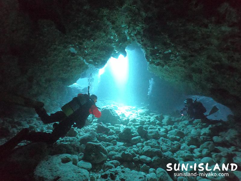 洞窟探検やドロップオフなどの宮古島ダイビング特有の起伏に富む地形ダイビングとまた違った景色が何よりもいい。