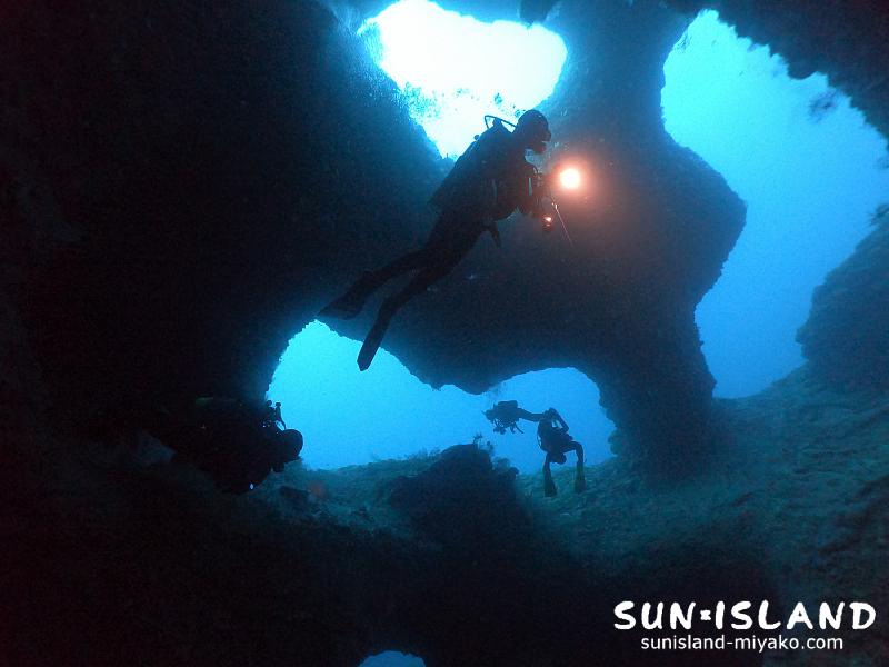 1本目から宮古島を代表する地形スポット・ポイントに潜り、ゲストさんたちも満足そう。
