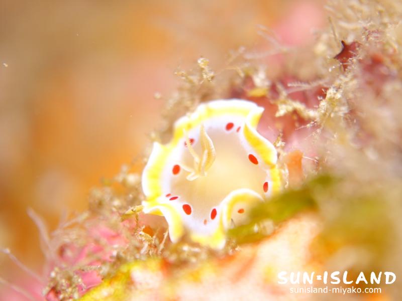 宮古島の海を潜っていると、誰が見ても目で見て分かりやすくダイナミックで印象的な地形に目がいきがちで。どうしても、ウミウシなどの小生物は片手間になってしまいがちで。だって見えないんだもん、せっかく宮古島に来たら地形でしょ。と、言われてしまうとそれまでですが(笑)そしたらもちろん、地形を気持ち良くご案内します♪