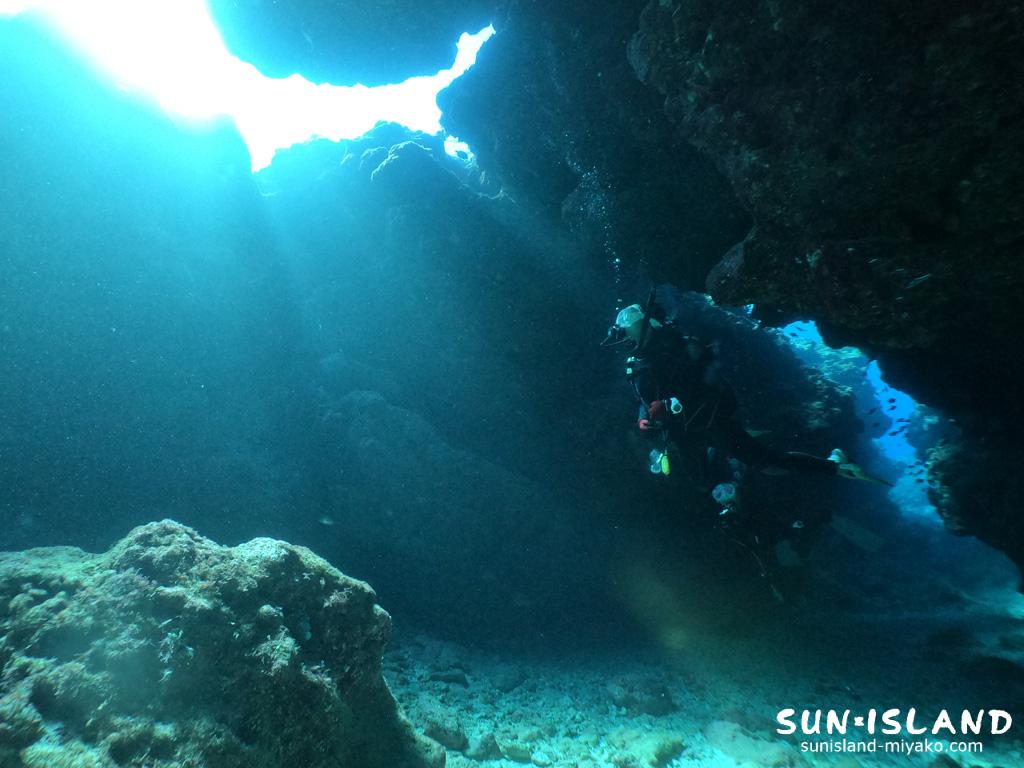 これから11月上旬くらいまでは年間の中で晴天率が高く、宮古島ダイビングの最大の特徴とも言える地形(カバーンダイビング)がオススメ!