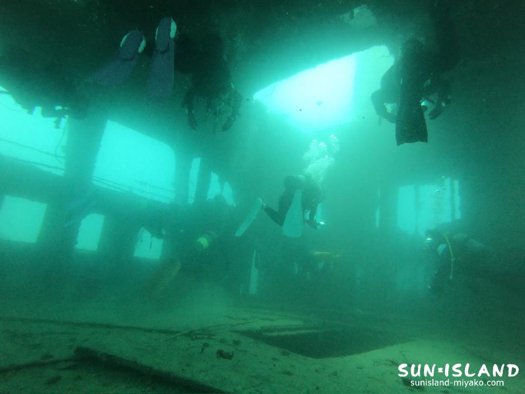 中にも入ることができるようになっていますので、まるでジャングルジムのように沈船に出入りしてダイビングを楽しみます。