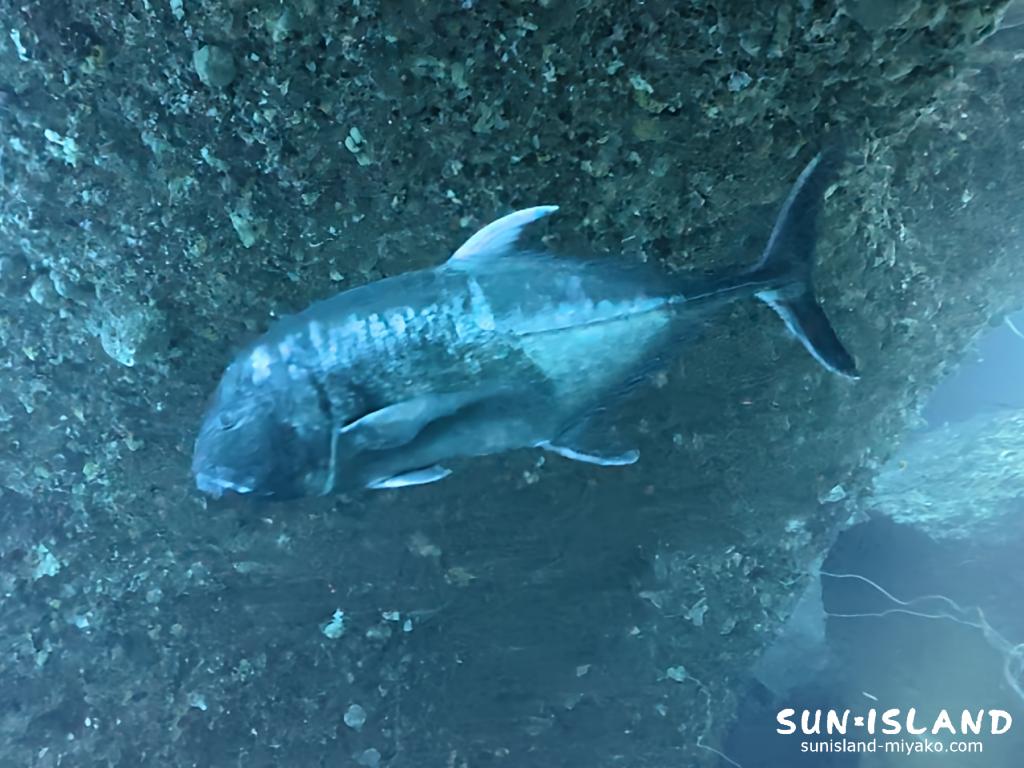 伊良部島エリア最大の穴の造形のダイナミックさと、ロウニンアジを間近で遭遇するミラクルなダイビング。