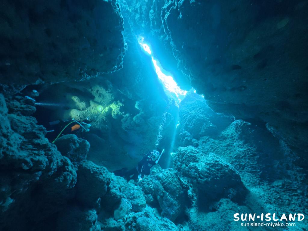 多くのダイバーを魅了してやまない宮古島 ダイビングスポットが集中しており、複雑に入り組んだ洞窟や巨大なアーチ、そして海底に広がる広大なクレバスなど、その造形はまるで冒険の世界。