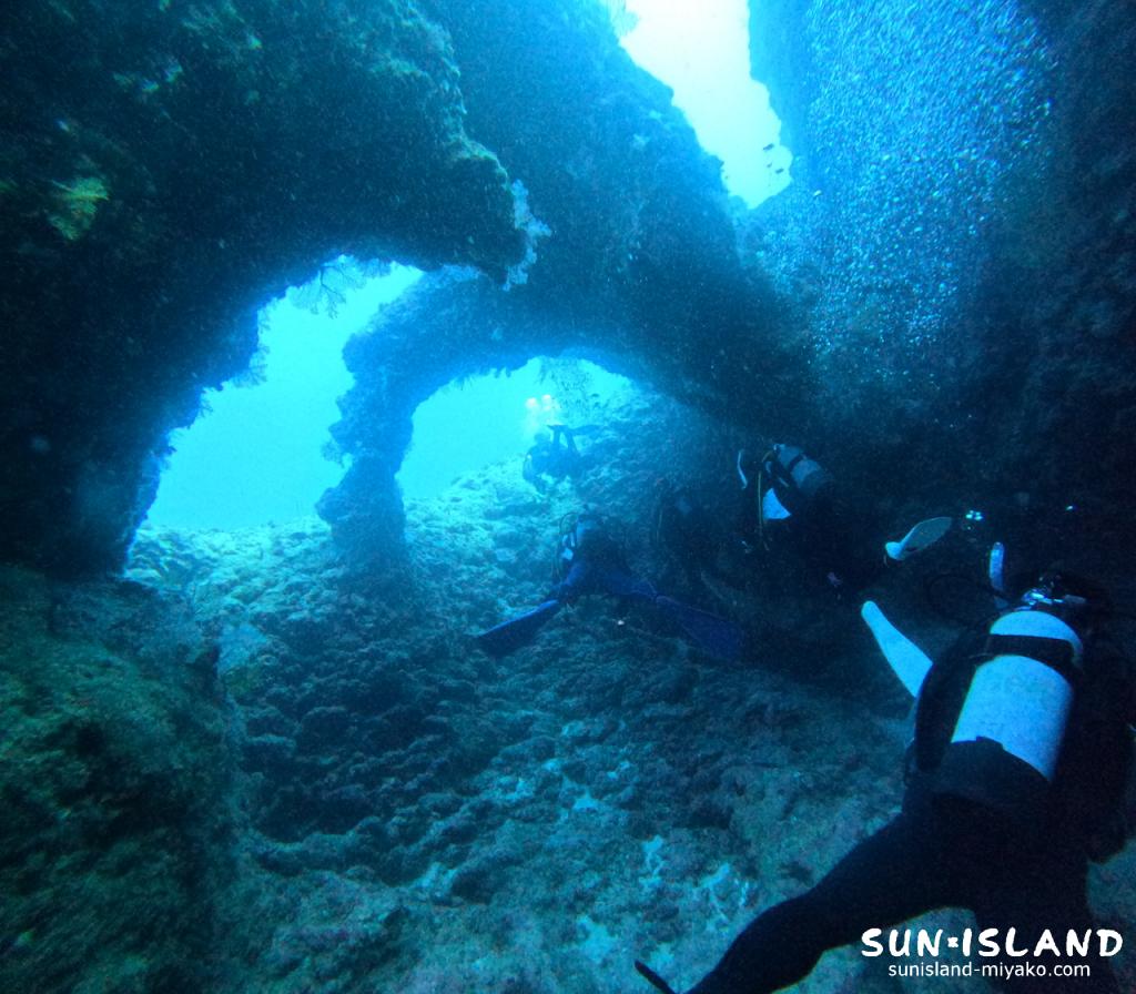 宮古島の三大地形ポイントうちの1つで、1つの視界には入りきらないほどのいくつもの穴が複雑に絡み合った宮古島ダイビングの大人気ポイントです。