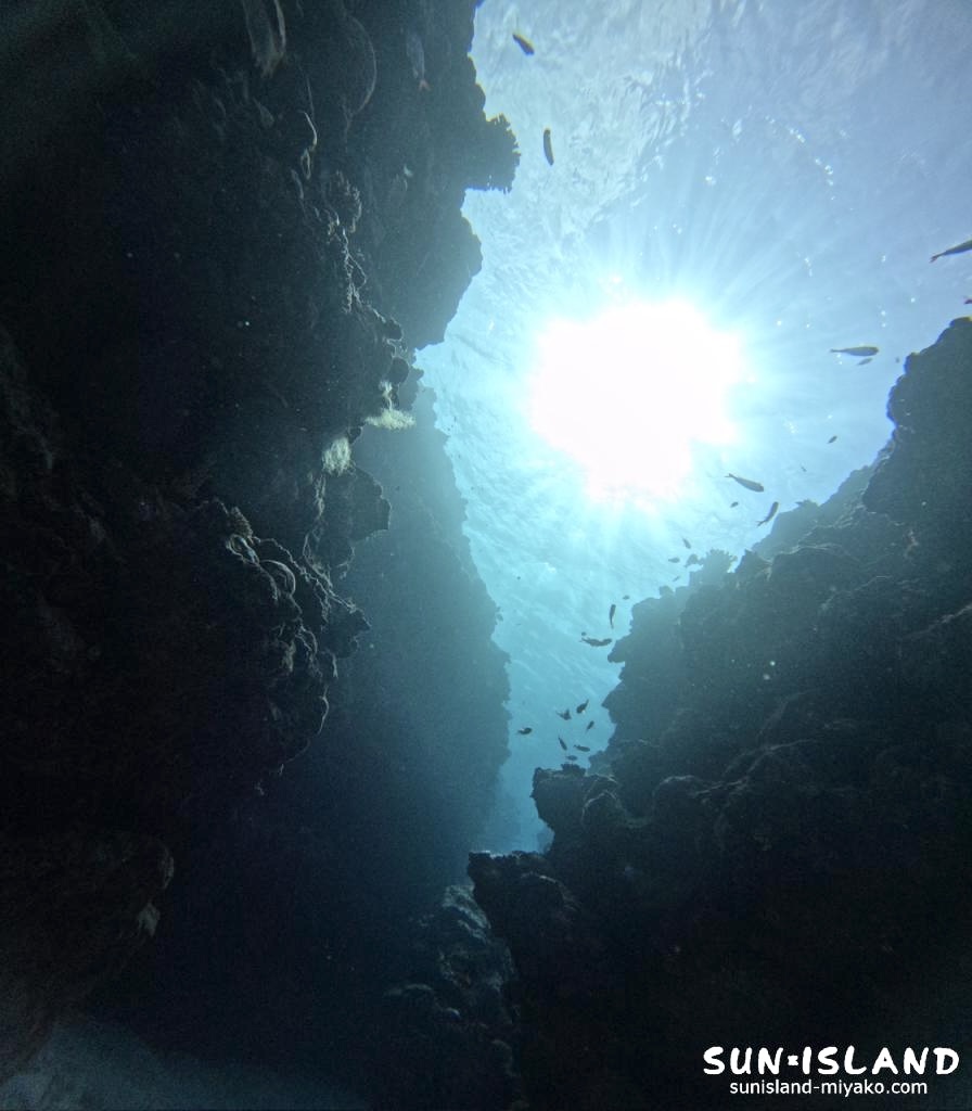 宮古島ダイビングは生憎の雨ですが、地形(洞窟)内に柔らかな明かりが印象的!(2026/1/31)